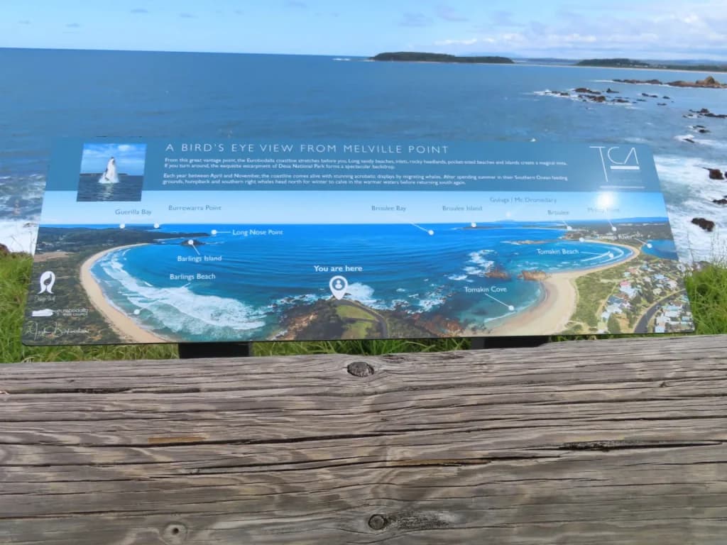 Melville Point is a notable geological teaching site, famous for two features: spectacular folding in the Wagonga rocks on the Barlings Beach side, and the mixing of the Wagonga and Adaminaby beds on the Tomakin Cove side. These rocks were originally mud laid down at the peaceful bottom of a deep ocean about 500 million years ago when all of the east coast of Australia was underwater and located near the equator. Since then they have had a very traumatic time involving volcanic activity, movement of continental plates, and massive squeezing and folding. Melville Point and its adjoining intertidal rock platform are on the Register of the National Estate as an important geological site.