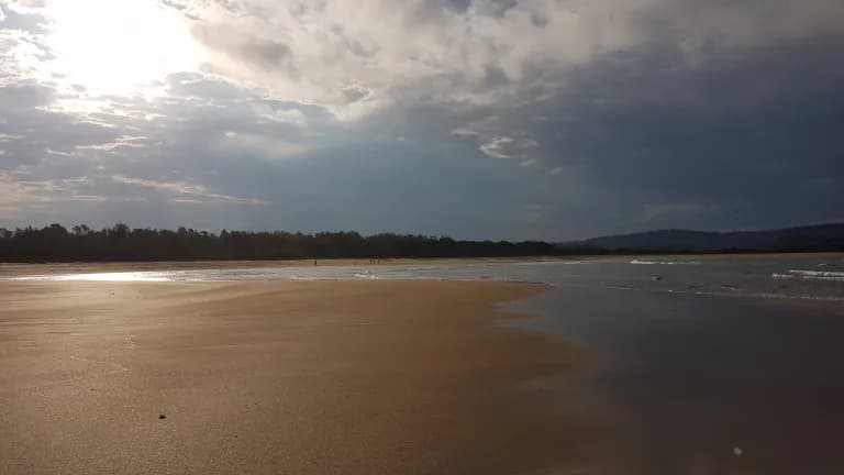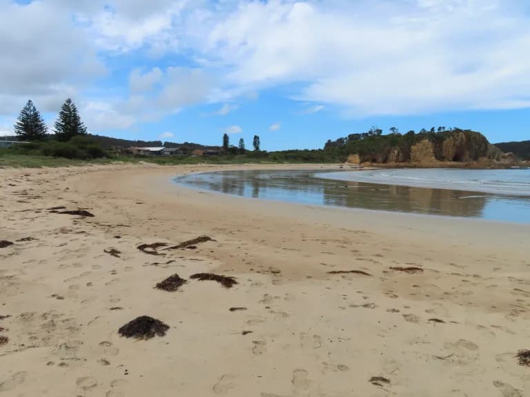 This beach contains patches of littoral rainforest and is bounded by Barlings Island and Melville Point with a vegetated frontal dune, low-lying grassland, and Banksia woodland. At times a creek runs through the site, draining the nearby wetland to the eastern end of the beach next to Barlings Island. The creek has meandered over much of the site in past centuries.